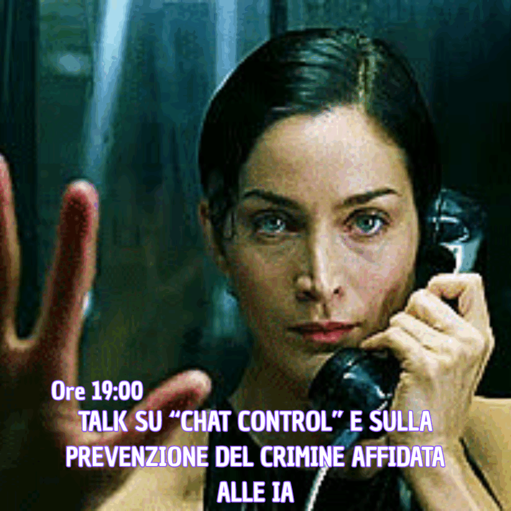 Dalle 19:00 Talk su “chat control” e la prevenzione del crimine affidata alle IA