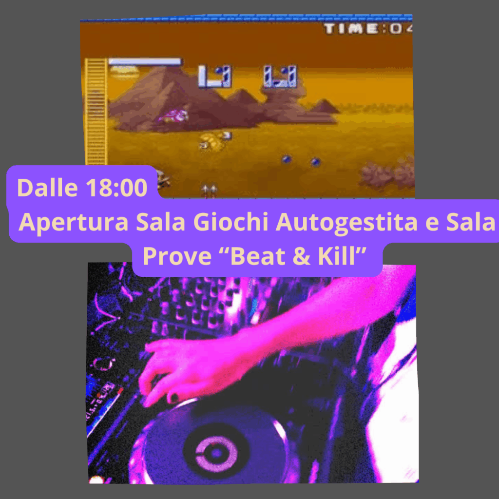 Dalle 18:00 Apertura Sala Giochi Autogestita, per il torneo permanente di questo mese vediamo chi mette il record più alto a Pang! ed apertura Sala Prove “Beat & Kill”